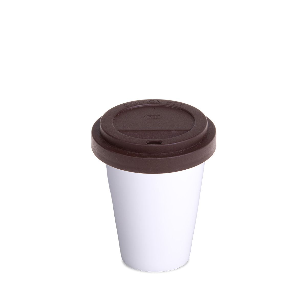 Práctica taza de porcelana con tapa de polímero que protege contra derrames accidentales de bebidas. Gracias a su estructura interna de doble pared de porcelana, poco común, esta taza se caracteriza por un mayor nivel de aislamiento térmico. El cuerpo de la taza está disponible en blanco y negro satinado. La tapa está disponible en los siguientes colores: blanco, naranja 021C, gris Cool Gray 7, azul marino 294C, marrón 4695C, negro, rosa 4064C, azul 2144C, eucalipto 5493C y arena del desierto 2310C.