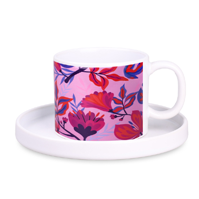 Taza práctica y versátil Velo Art Solid en la versión de sublimación Solid Shield con platillo dedicado. Taza clásica de cerámica de forma simple y con asa ergonómica. También disponible sin platillo